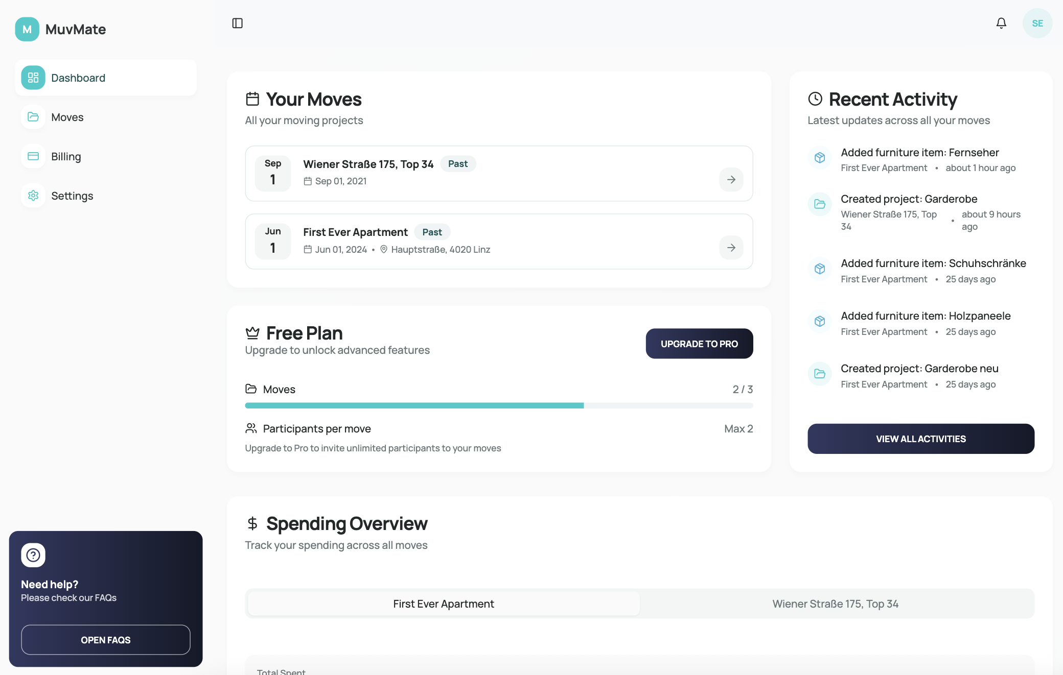 No, MuvMate is free to start. The Starter plan gives you everything you need for your first move, including purchase tracking and delivery timelines. You only need to upgrade if you want to track expenses, set budgets, manage multiple properties or need unlimited home inventory.
