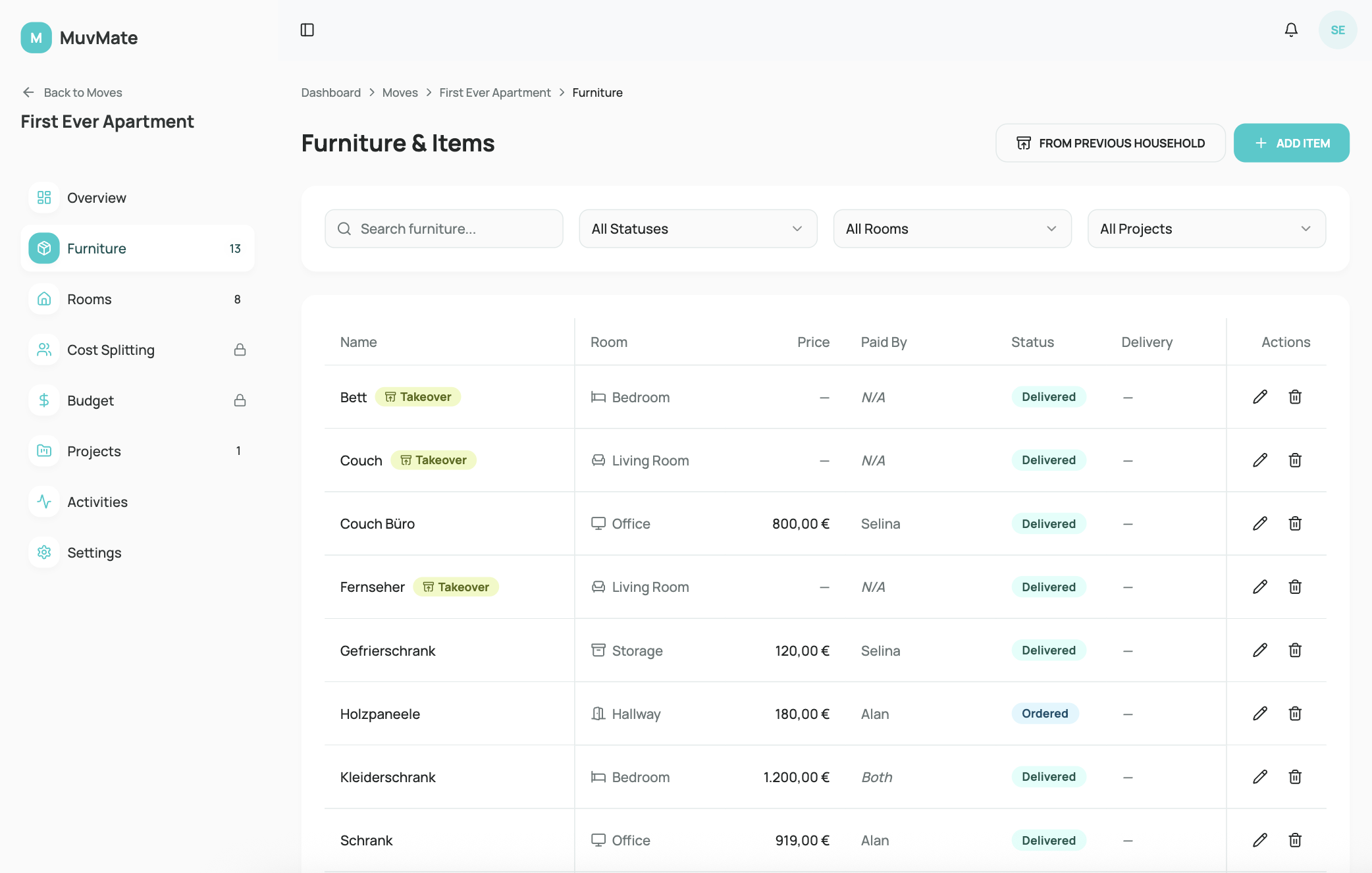 Track purchases, manage deliveries, split costs fairly, and stay on budget - whether you're moving in with your partner or roommates.